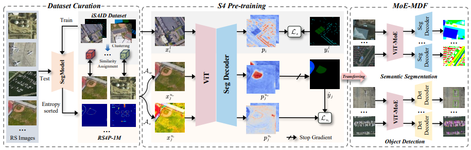 Liang Lv, Di Wang, Jing Zhang and Lefei Zhang Association for the Advancement of Artificial Intelligence (AAAI), 2025. (AAAI Oral) [Paper][Code] News: [武大提出S5框架:首个遥感领域可扩展的半监督语义分割框架] [武大团队首次将半监督学习扩展到百万级遥感数据预训练, 代码已开源!] |