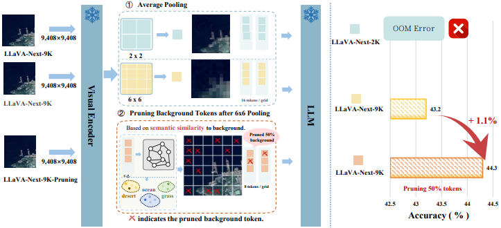 Fengxiang Wang, Hongzhen wang, Zonghao Guo, Di Wang, Yulin Wang, Mingshuo Chen, Qiang Ma, Long Lan, Wenjing Yang, Jing Zhang, Zhiyuan Liu and Maosong Sun IEEE/CVF Conference on Computer Vision and Pattern Recognition (CVPR), 2025. (CVPR Highlight) [Paper][Project] News: 超大幅面尺度下, 多模态大模型还能完成遥感感知与推理吗? |