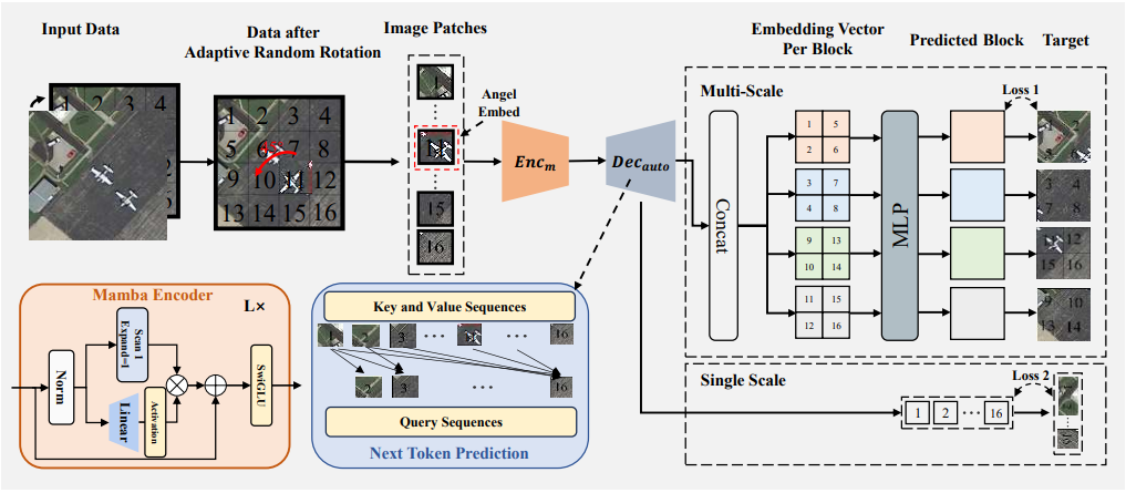 Fengxiang Wang, Hongzhen Wang, Yulin Wang, Di Wang#, Mingshuo Chen, Haiyan Zhao, Yangang Sun, Shuo Wang, Long Lan, Wenjing Yang, Jing Zhang Annual Conference on Neural Information Processing Systems (NeurIPS), 2025. [Paper][Code] News: 自回归预训练首个mamba架构的遥感基础模型, 验证mamba的scaling能力 |